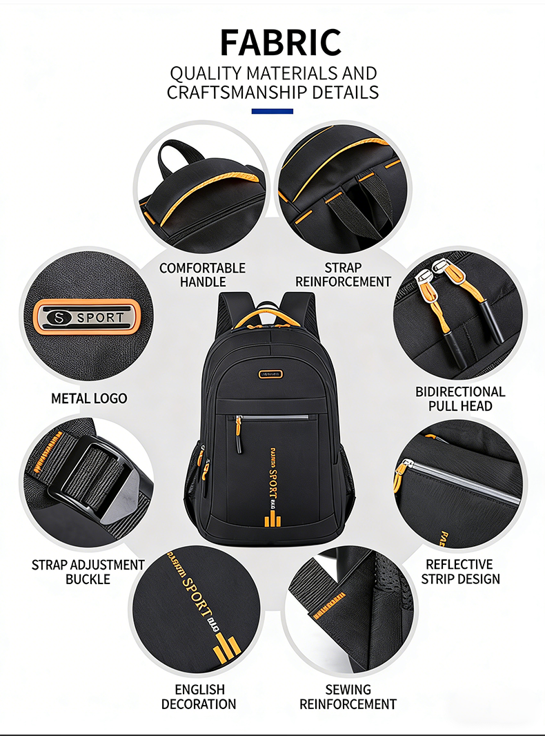 Hochwertige Materialien, stabile Reißverschlüsse und saubere Nähte machen diesen Rucksack strapazierfähig und langlebig.